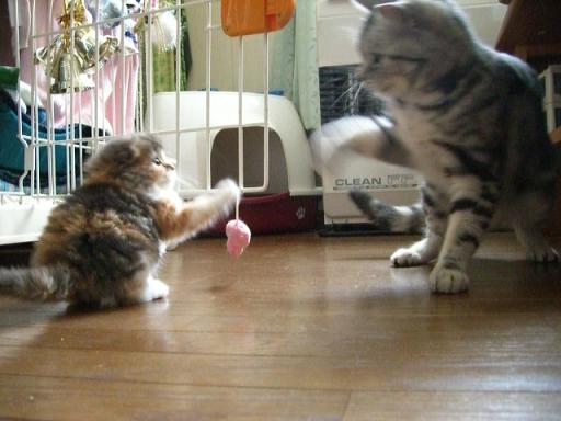 モンモンにとってはじめてのお家♪ びくびくしながら 探検、探検!!好奇心旺盛で、やんちゃな女の子♪♪タレ耳&意外にタレ目な「スコ」ちゃんですジーコと仲良くできるかな??ミ~~~、猫キック!!!相性バッチリ?!ジーコも母性が目覚めたらしく、ペロペロジーコがデカク見える今度はモンが、チュウチュウまだママが恋しいみたいで、ちょっと可愛そう。