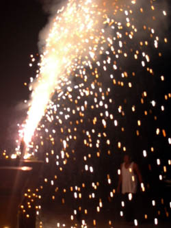 明けまして おめでとう ございます 本年も どうぞ よろしく お願いいたします フィリピンの新年は年が変わる少し前から近所で爆竹やら打ち上げ花火やらが鳴り響きとってもにぎやかな新年のお祝いでした。ところかまわず爆竹を打ち放すので少々危険を伴う年明けでした 私の新年は、Ground Europia というsubdivision(住宅地)に住むオフィスメイトの家で迎えました。初めて住宅地へ行ったのですが この場所は新興住宅地のようでフィリピンの中でも近代化しているように感じました。 まず、10時から1時間ほどミサに参加しました。神父さんの話を聞いたり歌を歌ったりお祈りをしたり厳かな雰囲気で静かな夜かなと思いきやお祈りをしている向こうの方で爆竹などが鳴り響き雰囲気を壊す時もありました でも、日本人が初詣に行くのと同じようにフィリピンの人たちも教会などに行ってお祈りをするので宗教は違えどすることは同じですね そして、2007年になり最初にすることは晩ご飯を食べることでした。これは、クリスマスと同じ過ごし方ですね。メニューもだいたい同じでした。 電飾をしている家がたくさんあって10年前にアメリカにホームステイした時を思い出しました。家もアメリカンスタイルの家が多かったです。改めてフィリピンの貧富の差がよく見えました 最後に今年の抱負を・・・今年は、もっとフィリピンのことを知り、そして言葉を覚えようと思います。今年も日々精進して奮闘していきます。よろしくお願いします