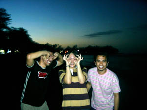 今月から毎週水曜日は、授業を1時間繰り上げて夕方5時からリクリエーションと題してバトミントンをしたりどこかへ出かけることにしました。学生達のストレス発散のためです先週の水曜日はバトミントンをして今週はバスケットボールをしようと思って家の前に集合したのですがなんと先客あり。家の前にはバスケットゴールがあってバスケットができるようになっています。でも、お手伝いさんが私たちのバスケットボールを知らない人たちに貸してしまっていたので私たちはできませんでした。取り返してもよかったのですがそこまでしてするのも・・・・と言いながら別のプランを考えることにしました。 そして、もう一人の先生が「じゃ、BONBONビーチに行く?」の一言でジプニーに乗ってBONBONビーチという所に行って来ました。 BONBONビーチは、オフィスから15分くらいのところにあります。私は、名前だけ知ってて汚い海だよということを聞いていたのでとりあえずどんなところか観てみることにしました。でも、もうすっかり日が落ちてしまったのでどんなところかあまりわかりませんでした。でも、想像していたほど汚くはないようです。 カガヤンデオロ市内の海へ行ったのは初めてでした。学生とちょっとふざけて写真を撮りました。 その後は、「ALL YOU CAN EAT」つまり食べ放題のお店へ行って来ました。ここのお店は、私がいつも行く柔道場の近くにあるのですが一度も行っていませんでした。一人で食べるのも味気ないですからね。それで、今日は連れがいるので食べてみることに。10種類くらいおかずとご飯があってバナナのデザートとスープが1種類。それが食べ放題で100ペソ。かなり安いです。 フィリピンスタイルのお皿。一つのお皿におかずをのせて食べるので味がゴチャゴチャです。私のお父さんの嫌いな食べ方ですね。私は、もう慣れてしまいました カニ小さくないカニだったけど身が少なくって食べにくかったです。日本のような大きくって身がたくさん詰まったカニが食べたいなぁ~ でも、満腹な水曜日でした。