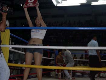 今日の試合、階級が大きくなると 試合も本格化してきて ラウンドガールもでてきはりました。 生ラウンドガールは初めて でも、このガールたち どうみても素人 おまけにお腹もポッコリ プルンプルンお肉を揺らしながら 歩いていましてん 私とGgさんは大爆笑してたんで それはそれは面白かったんですわ Ggさんがお腹をみて 「あの子は絶対子ども産んでる」とか 「あの子は かわいくない」とか 「どこで見つけてきたんやろうこんな子」とか 言ってはりましたわ 試合後のパーティーで彼女たちを見つけたんで 写真をとりましてん 彼女たちの中には ディスコ所属のダンサーもいましてんで ちなみに彼女たちのダンスは上手でした 私は下手ですけど・・・・