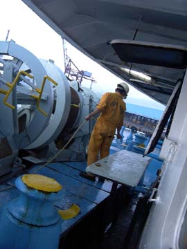 ↑乗るとき撮った船↑ 朝、船が6時ぐらいにカガヤンデオロ港に着くはずなので 少し早起きしてシャワーを浴びて フェリーの食堂で朝食を食べましてん。 たまごとごはんとコンビーフ フィリピンでは一般的な朝食かな。。。。 コーヒーの入れ方がちょっと変わってて コップにお湯を入れて持ってきてくれるんです。 それで、粉コーヒーとミルクと砂糖を後から入れて 自分で作るんです。 最初はちょっと驚いたけど 習慣の違いは、またまた面白いもんです 朝食セットは50ペソ ↓朝の港↓ カガヤンデオロ港を後にした私は ジプニーに乗ってディビソリアまで行き そこからまたジプニーを乗り換えて 7時半ぐらいに家に着きました。 そして8時から授業をしました。 頑張った私!! 最後にキンに「どうして月曜日に入管へ行くって言わなかったの?」と 聞かれました。 月曜に行くことにすれば土曜の夜カガヤンデオロから船に乗って 日曜日は1日セブで遊べたのにって もちろん考えましたとも でも、月曜の夜に船に乗って火曜日の朝着いて そのまま仕事を夜7時までするなんて 死んじゃいますわ おまけに火~土までまだ仕事が続くんですよ・・・ それよりは、半日授業の土曜日の朝帰って土曜の午後と日曜が 休めるのを選びますわ。 だって土曜日休めないんやもん 私の頭の中はいつもお仕事のことばかりっす そんな自分がたまに嫌になりますねん。。。 もっと自分のために頭使いたいですわぁ