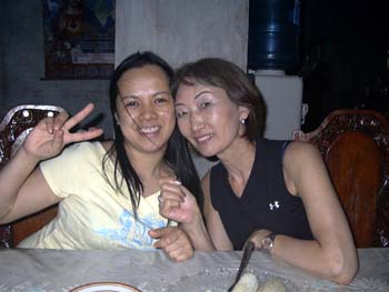 この二人がセブから帰るフェリーで出会った人たちですねん。 右がようこさん、左がシェリー シェリーは、カガヤンデオロから長距離バスに乗って 1時間のところにある「SALAY(サライ)」という所に住んでいますねん。 サライってね・・・♪サライ~の空の~~~~♪のサライ? 覚えやすい地名で良かった それで、私、初めて一人でバスに乗ってサライへ行きましてん。 バスに乗るまでは順調順調 バスに乗る前にちょっとしたパンと飲み物を買って気分はルンルン そしてバスが動き出し外の景色を見ながらI podを聞いていると そろそろ1時間になろうとしましてん。 そういえば、このバス・・・ 停留所ってのが決まってないんです・・・・ どこでも降りれるんですわ。 だから自分が降りたいところで降りれるんですけど 私、地名しか知りませんねん。 そんでもって ここフィリピンは道路標識と言うものがないんですわ おまけに景色はほとんどどこも同じですねん だからいくら目を凝らして外を見てても家だらけ たまに学校とか病院とかあるんで その名前を読んで場所確認するも 知らない名前なんで サライの手前かもわからしません。 そうこうしているうちにシェリーから電話がありまして シ「イマ、ドコ???」 私「え。。。。バスの中」 シ「チケット ウリノ オジサンニ イキサキ イッタ???」 私「オオ」 シ「チョット、カワッテ モラッテ」 私「え、今近くにいないよ・・・。」 シ「デモ、モウ 1ジカンネ・・・。」 シ「モウ サライ 二 ツイテ イイ ノニ」 私「そうね、たしかに、でもまだよ」 シ「マタ 5フン アトデ カケルネ」 私「・・・・・・・」 どこで降りるかは車内のチケット売りのおじさんに話したんですよ 「サライのペトロン」って (サライにあるガソリンスタンド) 焦っている私の目に 「サライ 中央病院」の看板が!!! お!ここはサライじゃない? そしてチケット売りのおじさんに確認したら もう少ししたらペトロンだよって言ってくれましてん そして、無事にバスを降りることができましてん そして、シェリーが迎えに来てくれて 家に着きました 結構無謀なバス旅行だったかしらん。 よく考えたら会ったばかりの人の家に遊びに行くのもそうだけど 携帯電話番号と町の名前しか知らないで出かけちゃうなんて 日本じゃしないかも・・・・ 無事に昼間前に着いた私は 早速、みんなでご飯を食べました。 定番のレチョンもございましたよ 1年ぶりに帰った娘のためにパーティー 親戚、ご近所さんが入れ代わり立ち代わりで 家にやって来ましてん。 私が日本に帰ってもこんなパーティーは・・・ないですね、たぶん 彼女は日本で働いてお金を稼いできたもんで 家族はやっぱり嬉しいんでしょうね 私はと言うと お金を稼ぎにフィリピンに来ているわけじゃないんで・・・・ お金を嫁せぐんやったら日本で働きます 日本に1年もいると フィリピン人も白くなりますねん。 フィリピンの人は元々白いんじゃないかと思います。 黒いのは日焼け ずっと夏やから日焼けしっぱなしなんでしょうね。 赤ちゃんとか見てても白いもん。 ここの家族はとにかくよく笑ってましたわ。 私がいる間 笑いが絶えることはなかったですね。 笑わんとあかんね、人間は 確か、動物の中で笑えるのって人間だけやった気がします。