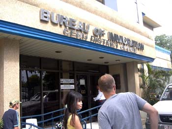 そうこうしているうちに9時が近くなり私らはキンの友達の男の子(トイくん)をお供に3人でマンダウェイにある入管へ行きましてん。 ここの入管はさすが、セブですね 外国人がめっちゃ多かったですわ・・・ あ、私も外国人ですねん キンと二人で「手続きが1日で終われるといいね~」なんて言いながら 入管のビルの階段を上ったり下ったり・・・・どうしてお役所って人を動かすのが好きなんやろう・・・ こっちの部屋に入ったと思えば、今度はあっちの部屋に・・・ そしてやっと必要な書類が全部そろって窓口に書類を提出して 後はお会計を待って、その会計記録と一緒にまた上の階へ・・・・ 今度はIカード登録のためにしないとあかん手続きをしましてん。 なんか、犯罪者になっかかのように正面向いた写真と横向きの写真を撮りましたわ そして、10本の指全部の指紋を登録しなあかんのです。 働いてるだけやのに・・・フィリピンに税金納めてるのに・・・ やっぱり気分は犯罪者でしたわ。。。。 登録が終わってから事務のおじさんが一言 「Iカードが発行されるのは4ヶ月後です」 ? ? ? ? ? 「今、何とおっしゃいました???」 「4ヶ月後?????!!!!!!」 えええええええええええええっと、おじさん、すみません、 4ヶ月後って6月ですか???? 6月だったら、私はフィリピン入国からとっくに1年過ぎとるがな!!!! 日本に一時帰国できる日はいつになんねんやろ・・・・ ちょっとあまりのショックで涙がでましてん。。。。。。。。。
