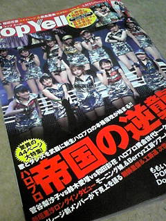 目指せマイナス5歳肌!徳兵衛でございます。今回は、それゆけ凸版印刷!…やっぱり画像が出ない。ハロプロムック本第八弾は、最近お目にかかることが多くなった、嶺脇社長と道重さんの対談や、江口寿史さんとマノさんの対談もあり、そんな新企画が多い中やっぱり光るのは、ガキさんの言葉…泣けてくる…マイナス5歳でもいい歳…それでは。