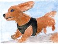 長男が帰省しいる最中下の絵を見てすごく感動し欲しいと言い出したのでみのもんたじゃないけど可愛さ余りに奮発して文字を入れ作成してみた大きさはA4縦の画用紙にスキャナーで元の絵をコピーし 考え付いた文字を書いた作品をラミネートしたものでベニアに木枠をボンドで付けラミネートした作品に両面テープ50mmを貼り付け 最後に赤っぽい和紙でふちどりした