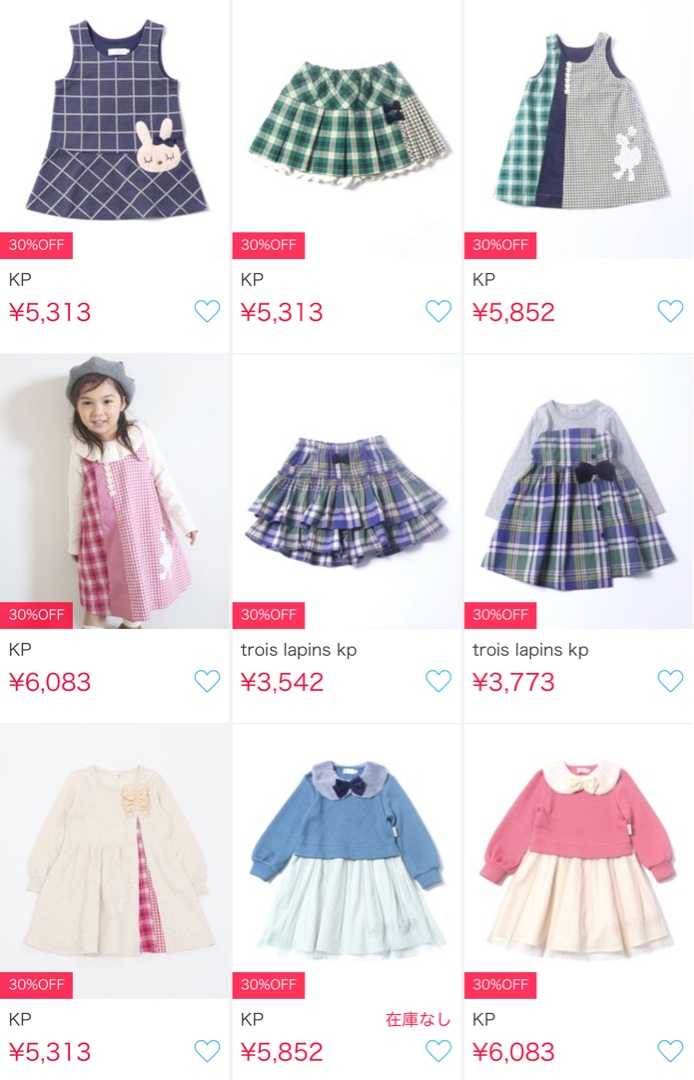 一足先にセールになったz⚫︎z⚫︎さんで購入。 ソフトバンクユーザーだとpaypayモールでさらに18%還元、実質40%引くらいになります❤️ ★KP ダブルフェイス×ラメチュールワンピース ピンク 120cm 8,360円(税込)→ 30%OFF 5,852円 さらに18%(1051ポイント)還元 \2020AWクリアランスセール30%OFF/KP(ケーピー)ダブルフェイス×ラメチュールワンピース(100-130cm)/KP ニットプランナー 2020AW 秋冬新作(cd39)/kw02 ★ KP ウエスト切替のワンピース オートミール 130cm 7,590円(税込)→ 30%OFF 5,313円 さらに18%(955ポイント)還元 \2020AWクリアランスセール30%OFF/KP(ケーピー)ウエスト切替のワンピース(100-130cm)/KP ニットプランナー 2020AW 秋冬新作/kw02 ★troislapins(トロワラパン)先染めチェックのドッキングワンピース レッド 110cm 5,390円(税込) → 30%OFF 3,773円 さらに18%(675ポイント)還元 \2020AWクリアランスセール30%OFF/troislapins(トロワラパン)先染めチェックのドッキングワンピース(100-130cm)/KP ニットプランナー 2020AW 秋冬新作(cdt06)/kw02