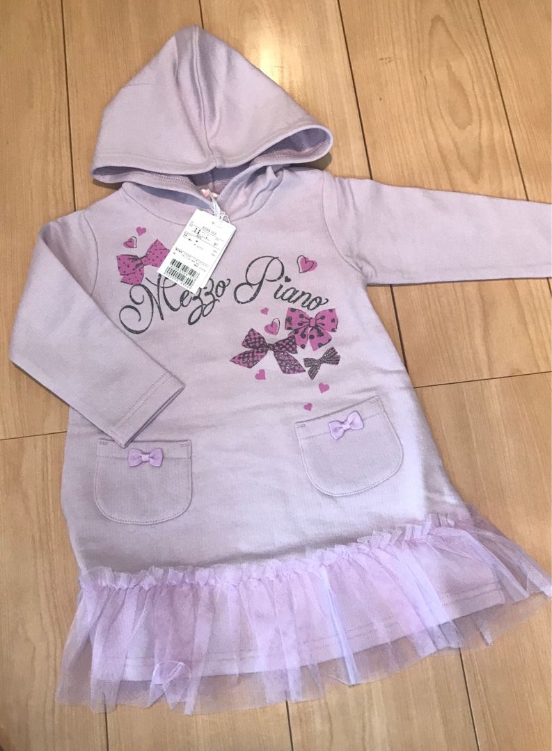 メゾピアノ(mezzo piano)裏毛 2WAY裾チュールリボンパーカー