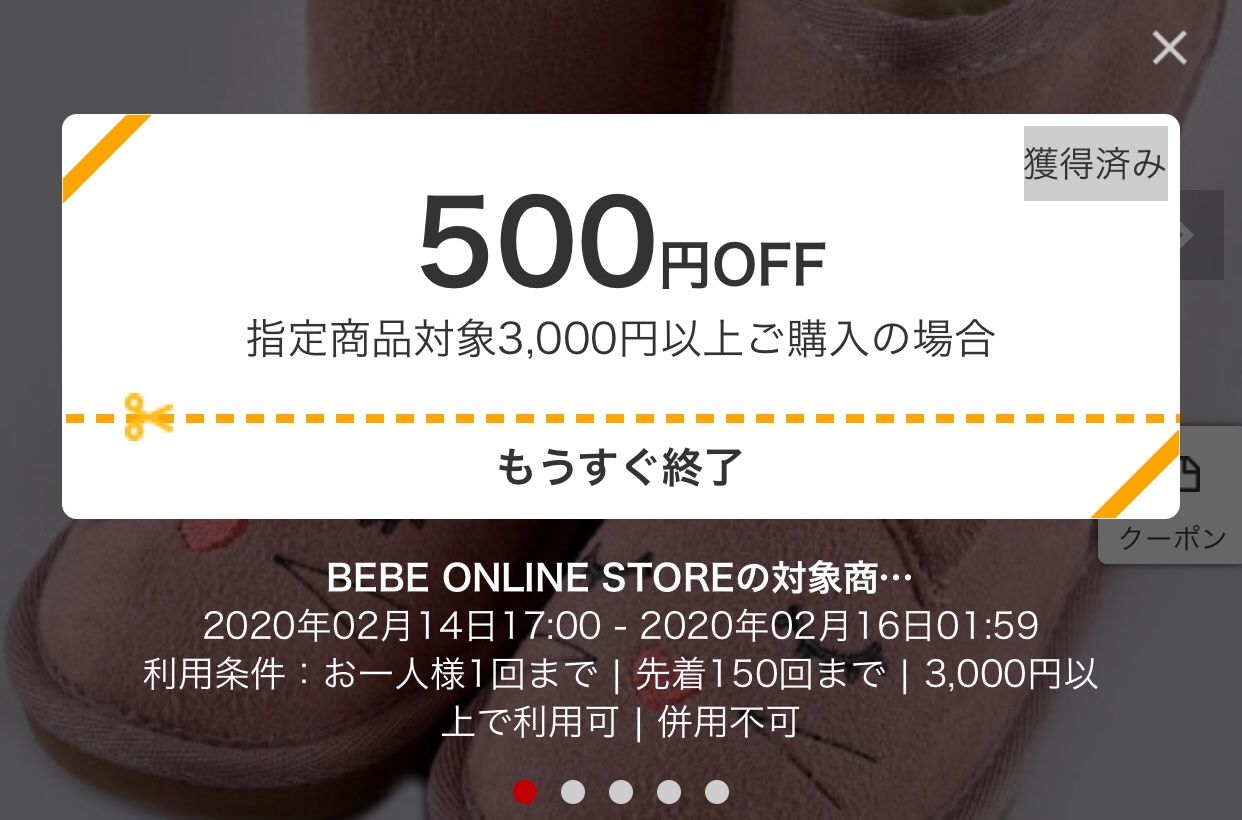 2/16 1:59までのBEBE限定のクーポンもでてます!