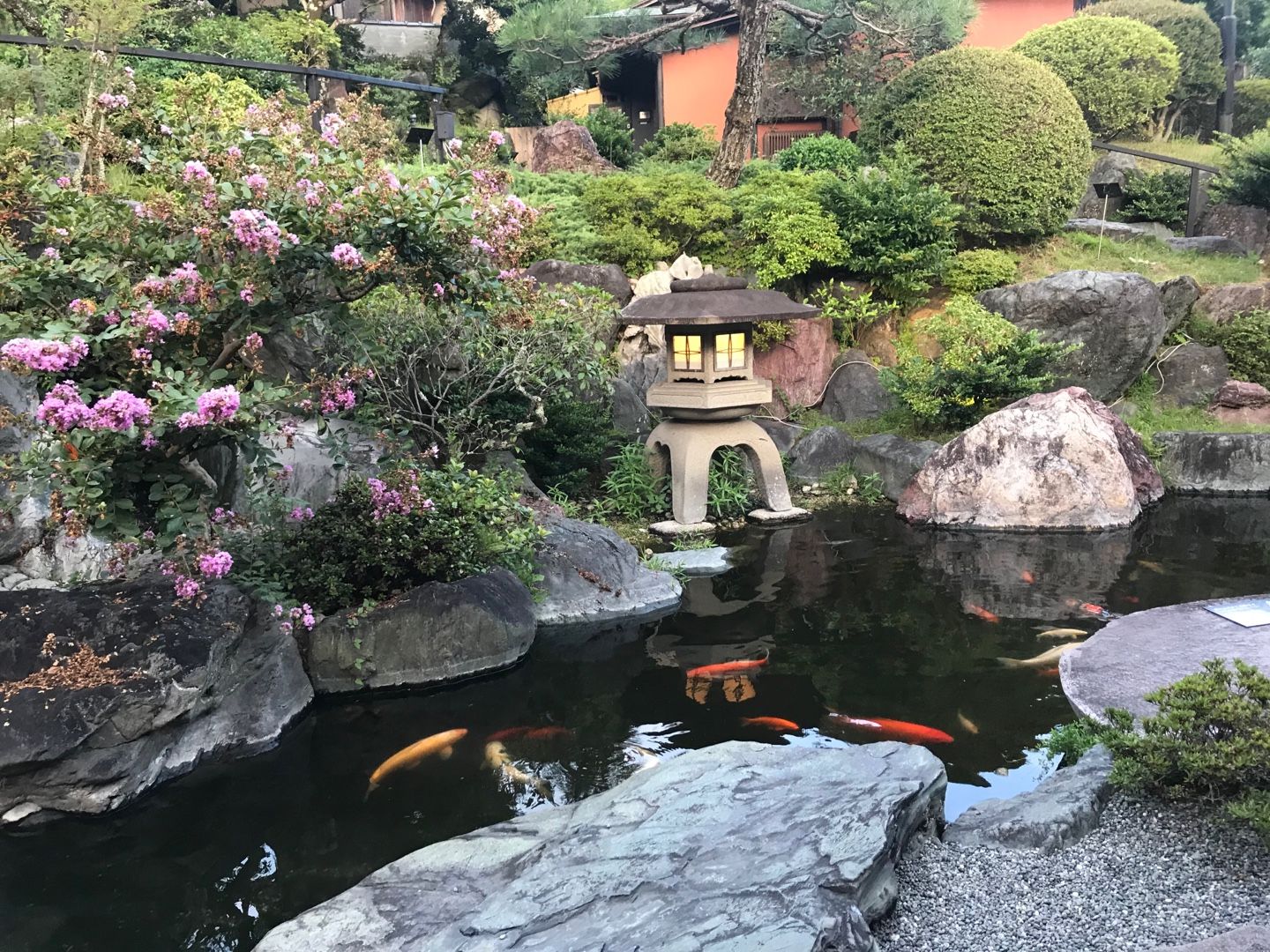 日本庭園の前で記念に家族写真を撮影してくれました。
