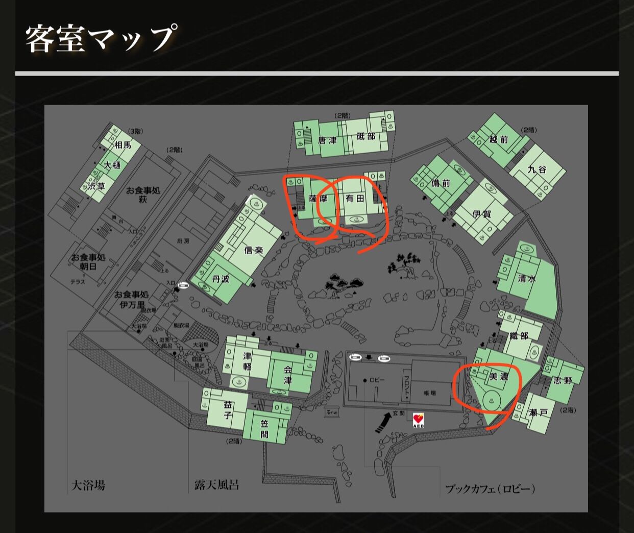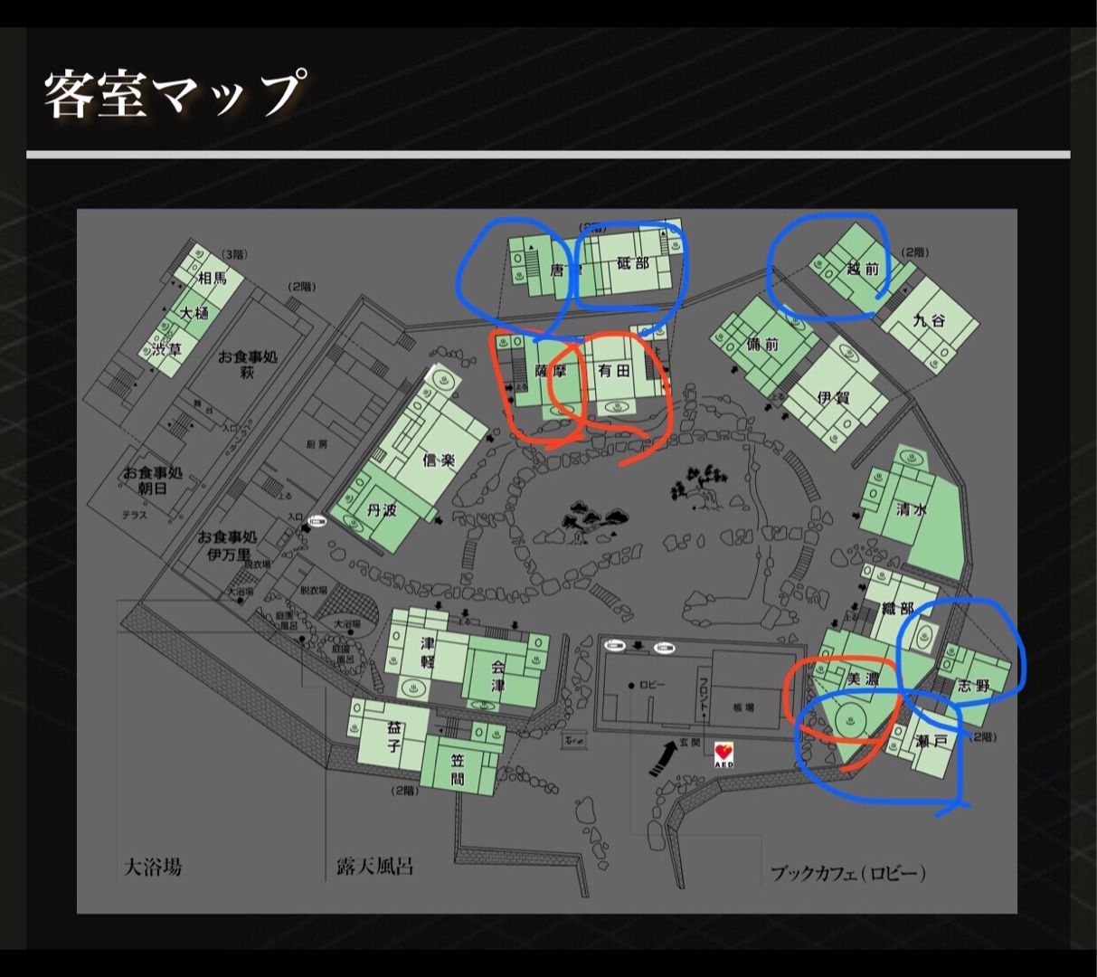 事前に旅館に電話をし、二部屋が近くなるようにお願いをしました。
