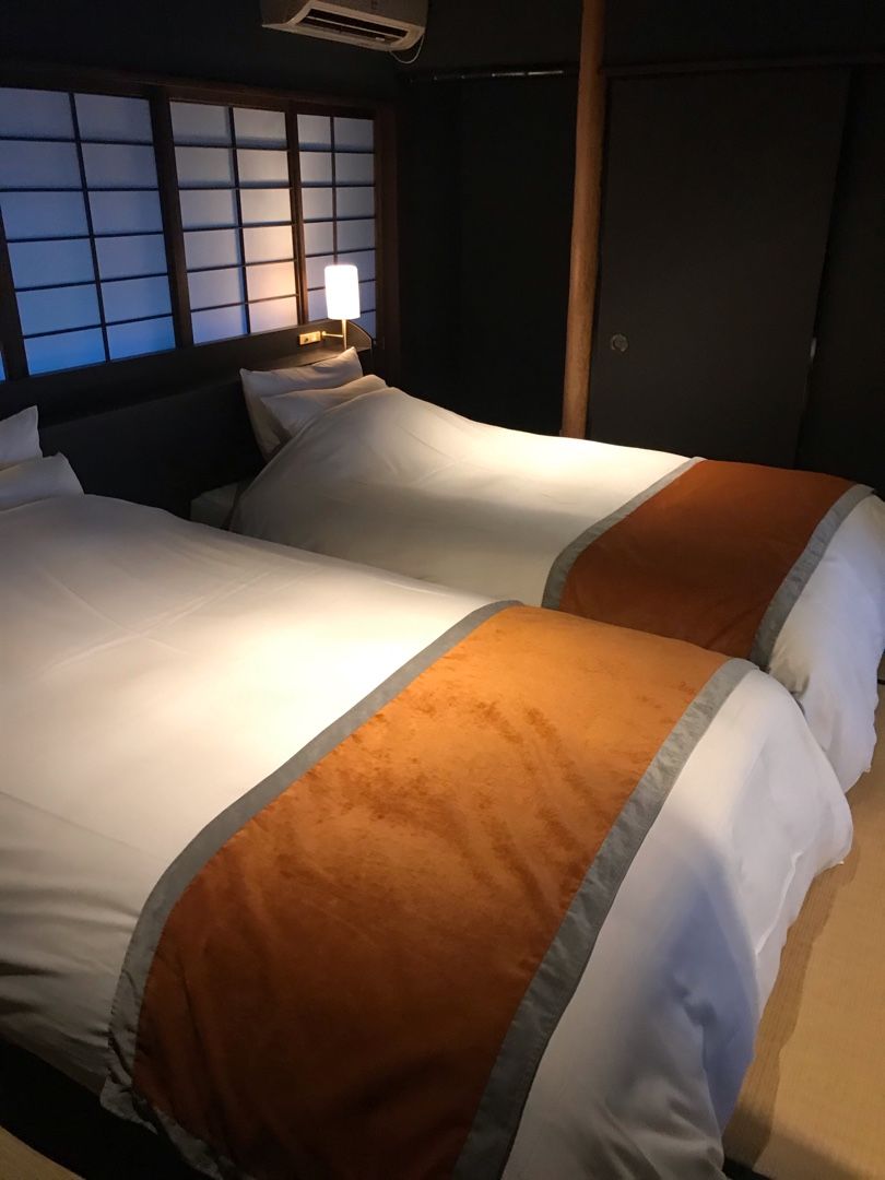 1部屋目はこちらの温泉露天付スイートツインルーム(岩風呂)