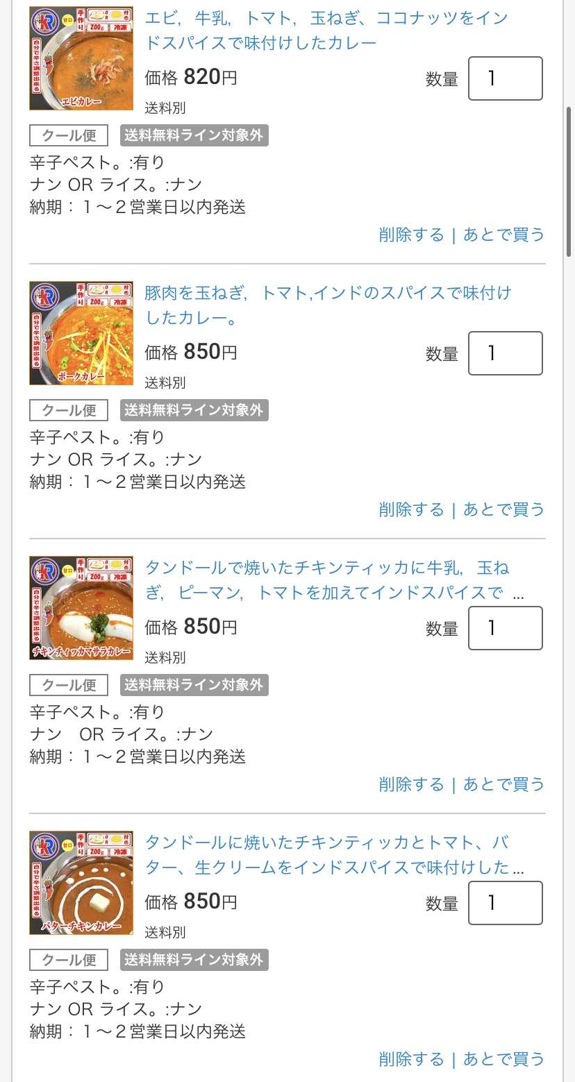 検索バーで「カレー」と検索するとたくさんでてきます。30種類以上!