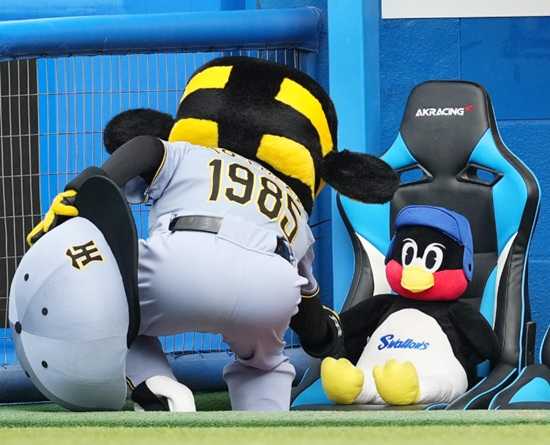 マスコット同士の熱い絆トラッキーがつば九郎に深々一礼&握手「空中くるりんぱ」も 阪神の球団マスコット、トラッキーが試合前、“つば九郎”と握手した。担当者の死去に伴い、活動休止中のつば九郎。そのぬいぐるみを一塁側ベンチに見つけると、帽子を取ってから深々と一礼した。それからつば九郎のぬいぐるみの“右羽”を熱く握った。 5回終了時には、つば九郎のように「空中くるりんぱ」を披露。球場を盛り上げた。東京ヤクルト 4x - 3 阪神 明治神宮村上 4年ぶり1イニング2被弾近本 チャンスで3度凡退高寺 サヨナラタイムリーエラー阪神 ビジター7連敗で埼玉と仙台の悲劇が甦るでも 横浜広島も負けて 2位との3.5差かわらずそれどころか セ.リーグで貯金があるのはタイガースだけいったい ど~なってるんだプロ野球今日は 実際これだけ...