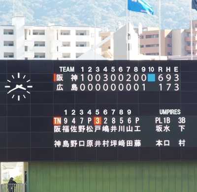 さらに七回には1死から近本、中野の連打で追加点。効果的に得点を重ねた。7日に優勝が決まれば1990年9月8日の巨人を上回ってNPB史上最速となる。