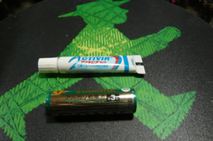 ちょっと疲れたり体調が悪かったりすると、すぐに唇の脇や上の方にプツプツができます。それはやがて赤く腫れ上がって、その後かさぶたになり、完治するまでに3週間はたっぷりかかります。そう、口唇ヘルペス。それで、今日はCMで見た薬を買いました。効能書きによると、 口唇ヘルペスは、ヘルペスウイルスの感染が原因で発症します。 このウイルスは、一度感染すると症状がおさまっても 体内に潜みつづけ、かぜ、発熱、ストレス、疲労、紫外線などが きっかけで再発します。そうでした。かぜ、発熱。たぶんストレス、疲労も。こんなに小さいのに(比較のために、下は単3の乾電池)、確か、特売価格で1,155円。結構高い。でも、効きました。まだ一回しかつけていないのですが、ほとんど消えました。その名は、アクチビア軟膏。薬と乾電池の下にあるのは私のマウスパッド。ベルリンのAMPELMANNという、歩行者用信号機「進め」の絵です。(余談)
