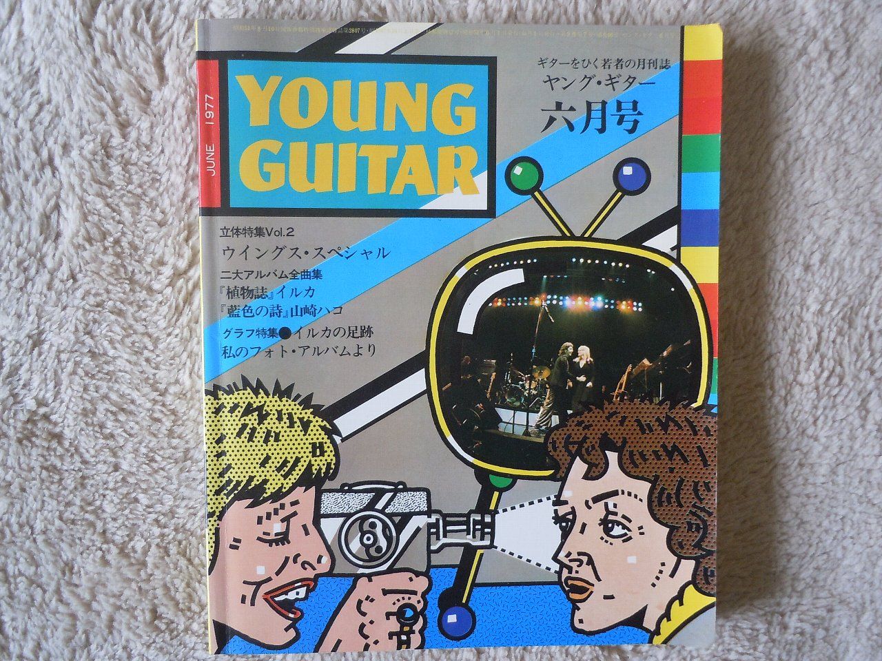 昨日も今日も気温は30℃近くもあり今日の天気は下り坂のため湿気が多いのか蒸しています連休前半最終日ですが今日も特に何をするでもなく何となく収納スペースの整理をしていましたギターの弦を張り替えて随分経ちましたがまだまともに弾いてみたことがありません連休後半にでも触れてみようかと思い始めていますというのも収納スペースにあったダンボール箱にギターとフルートの楽譜集が入っていてちょっとやってみようかなと思った次第楽譜集の中に古い音楽雑誌が入っていました【 YOUNG GUITAR 】の 1977年6月号 です調べてみると今も発刊されているようですね古臭くてクシャミが出てしまいました当時は全部読んだとは思えません文通コーナーなんてのもありました 【 YOUNG GUITAR 】 1977年6月号 現在は 980円 のところ当時は 450円 だったようですデイヴ・メイスンより右側の女性が気になったりして ( 笑 )エリート ギルバート ライダー ヤマキ