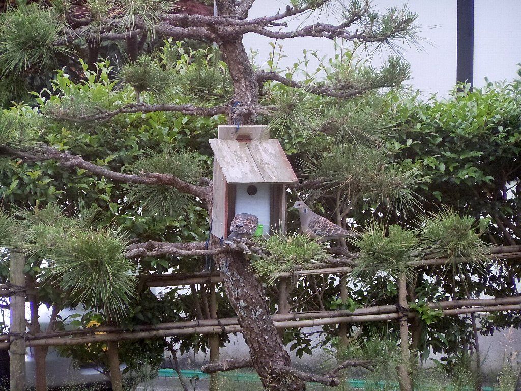 昨日はけっこう雨が降っていたにもかかわらずというより雨が降っていたからかもしれませんがスズメとキジバトが頻繁にやってきました休日だったので私も外を見る機会が多く脚立を設置したことによる影響を観察することができました夕方になってやっとキジバトの行動に変化がありエサ小屋2号の屋根と地面を行ったり来たり脚立の足が小屋の入口を狭めていて入りにくいようです松の木に設置したエサ小屋1号の場合も最初は小屋に入りにくそうにしていたため小屋の前に止まり木となる枝のある場所に移動させたのでした2号の小屋の前に止まり木となるパイプか何かを渡してやらないと2号はスズメ専用になってしまいそうですそうなると とうもろこし を取り分ける必要があり面倒です今朝は2号の方には とうもろこし を少なめに入れましたが帰宅してみるとしっかり残されていたということはキジバトは2号に到達していないということです( スズメはトウモロコシが大きくて食べられないみたい )次の休日に手当てをするまで不便かもしれないけどエサ小屋1号でも十分でしょうからしばらく2号はスズメ専用ということで (^^)セグロセキレイが入ってくれるといいのですがスズメよりせわしないので無理かなあまあ気長に待ちますか