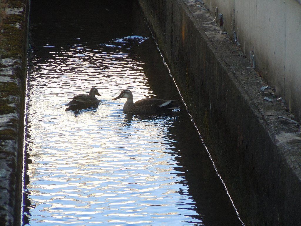 地味な鳥たちとはいえ一日に何度もエサを食べに来るようになって窓の外に目をやる機会が多くなりましたスズメが来るようになって少しのち来始めたころのキジバトやスズメと同じようにエサ小屋2号のあたりを セキレイ がうろつき始めました家の横にある川( 用水 ) の縁を歩いていて橋を渡って庭に来ることはよくありチョコチョコ歩く姿がとてもかわいいです今朝はじめてエサを食べている姿をみました鳴き声がかわいいのでセキレイは歓迎しますがセキレイ の少し前に招かれざる客が来ていました外が少し明るくなってきたころ遅く昇ってきた三日月を見ようとカーテンを開けるとエサ小屋2号で食事中の姿がありました背中をこちらに向けている姿に少し小太りのスズメかと思った次の瞬間動いたその動きが鳥の動きではありませんでしたエサを食べていたのは チューさんでした (^-^;車庫の横が用水ということはそういうのがいても然り! うかつでした少し太ったスズメ程度の大きさだったしシッポがピンクの肌むき出しにはみえなかったので遠目に見ていられました警戒心が強いのか強くないのかよくわかりませんが少し食べてはエサ小屋の縁の下にかくれ数秒後にまた現れてエサを食べることの繰りかえしそうやって私も台所で動きながらチラ見すること30分いっこうに去りそうにないので新聞を取りに出たついでに小屋の方に近付くとやっと逃げていきました川の方に逃げてすぐにポチャンと水音がしたので泳いで逃げたのでしょうか用水の側面にあるいくつもの排水パイプが通路になっているのかも 車庫は用水にピッタリくっついて建っています ( 右側が車庫の外壁 )ネズミが去った後すぐにセキレイが来て続いてスズメとキジバトが同時にやってくる状況下でエサ小屋2号を他の場所に移動するのはかわいそうな気がしますそうかといってネズミが常連客になっては嫌なのでネズミが入れない工夫はできないかなあネズミ返しを付けるほど高さがないしねえそれにしても子ネズミかと思ったけど違うのかなシッポは体長より長かったように見えたし耳が大きめでかわいらしくも見えました背中はスズメと見間違えるような茶褐色でも動いていると灰色にも見えましたまあクマかドブかハツカどれであってもゴメンですけどね (-_-)