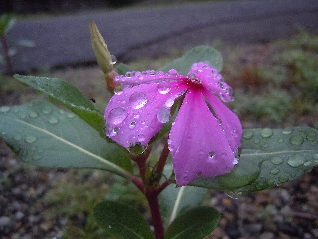 ゆうべから久しぶりに雨が降り今朝も静かに降っていて玄関の戸を開けると木々の匂いがしてきました和室の前は砂利を敷いてあります泥棒除けか安価によるものなのか分かりませんが砂利の隙間からも雑草が出てきます砂利なので雑草は引き抜きやすくてよいのですが花を咲かせているとつい抜かずにいるためこんな花があちこちに咲いています名前も知らなかったのでずっと気になっていてやっと調べあげたのですが何のことはない名前は聞いたことがあっても現物と一致していなかったのでした( 笑 ) ニチニチソウの開き切った花びらに雨のしずくが重そうです和室前の植木も名前の知らない木ばかりで花が咲いたときに調べていたのですがこのたび可愛らしい実がなっているのが気になって調べましたイヌマキというそうですが名前も聞いたことはありませんでした実がなっているので調べたらハナミズキでしたそういえば春に花が咲いていてハナミズキがあることを知ったところだったのに花がないともう何の木だったか忘れてしまう始末です (^-^; 予約掲載