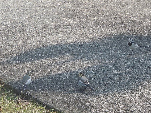 午前中は良い天気で暖かく午後から雨という予報が信じられないほどでしたが本当に昼から雨が降り始め雷も鳴っています天気の良い午前中のうちに整形外科を受診し午後はある業者の来訪があるため自宅待機でしたもしかするとまた家ごときに出費することになるやも "(-""-)"この一か月の足腰は何事もなく順調だったので服薬量 ( 服薬回数 )をまた減らすことになりました最終的には1種類の服薬だけにしたいとのこと( 今は2種類 )特別なことをしなくても痛くなることがあるらしいのでこれからの気温の変化がちょっと不安ではあるものの気にしてもしょうがないね (-_-) ☆ ☆ ☆昼頃にセキレイの元気で大きな声が聞こえたので窓の外を見ると相次いで3羽が庭に下りました今日は ハクセキレイ です左の2羽は前から気になっていたセキレイで羽根の色が灰色で 顔に少し黄色み がありますが胸が黄色くない のでキセキレイではないのだろうなあハクセキレイ と一緒にいるってことはまさか ハクセキレイ と キセキレイ のハーフなんてあり? ( 笑 )あちこち検索してやっと答えらしきところにたどり着きましたどうやら ハクセキレイ の 幼鳥-若鳥 らしいですまだ黄色みが残る顏が特徴なんだとかこの画像だけ見ていると納得します( 画像全体が黄色っぽく撮れてしまいましたが )ただ同じような鳥が用水に沿って飛んでいる姿を何度か見たことがあり羽根の内側が黄色かったような気がするので本当にハクセキレイの若鳥なのかもまだちょっとだけ疑っています( 笑 )飛ぶ姿を見るのは瞬時なので思い違いなのかもしれませんけどキセキレイ のように胸が黄色くなかったのでだったら 何セキレイ なんだろう? とずっと思っていたのですでもこの3羽が一緒にいるということはやっぱり親子なんでしょうね子どもであれば元気のいい声も納得です (^^)