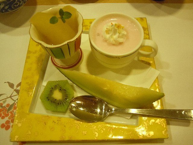 冷菓 : りんご甲州煮 いちごプリン メロン キウイ
