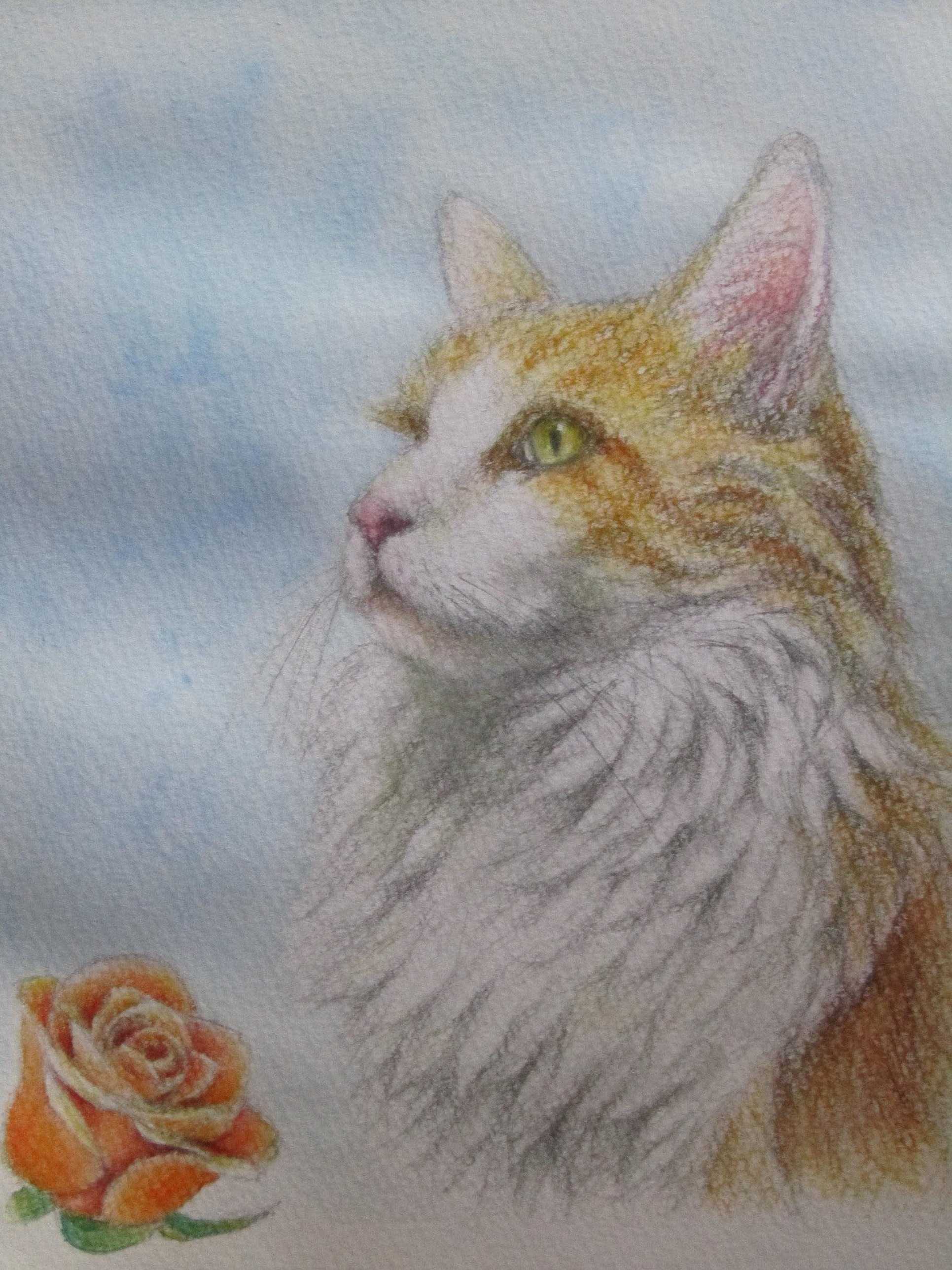 こんにちは、トムだにゃん昨日は、れもん兄さんの月命日🦁今月のお花もとても美しいにゃ✨特にオレンジ色の薔薇が印象的🌹きっと、兄さんもこんな風にお花を愛でているかも~(薔薇がうまく描けなくて申し訳ないにゃん😿)
