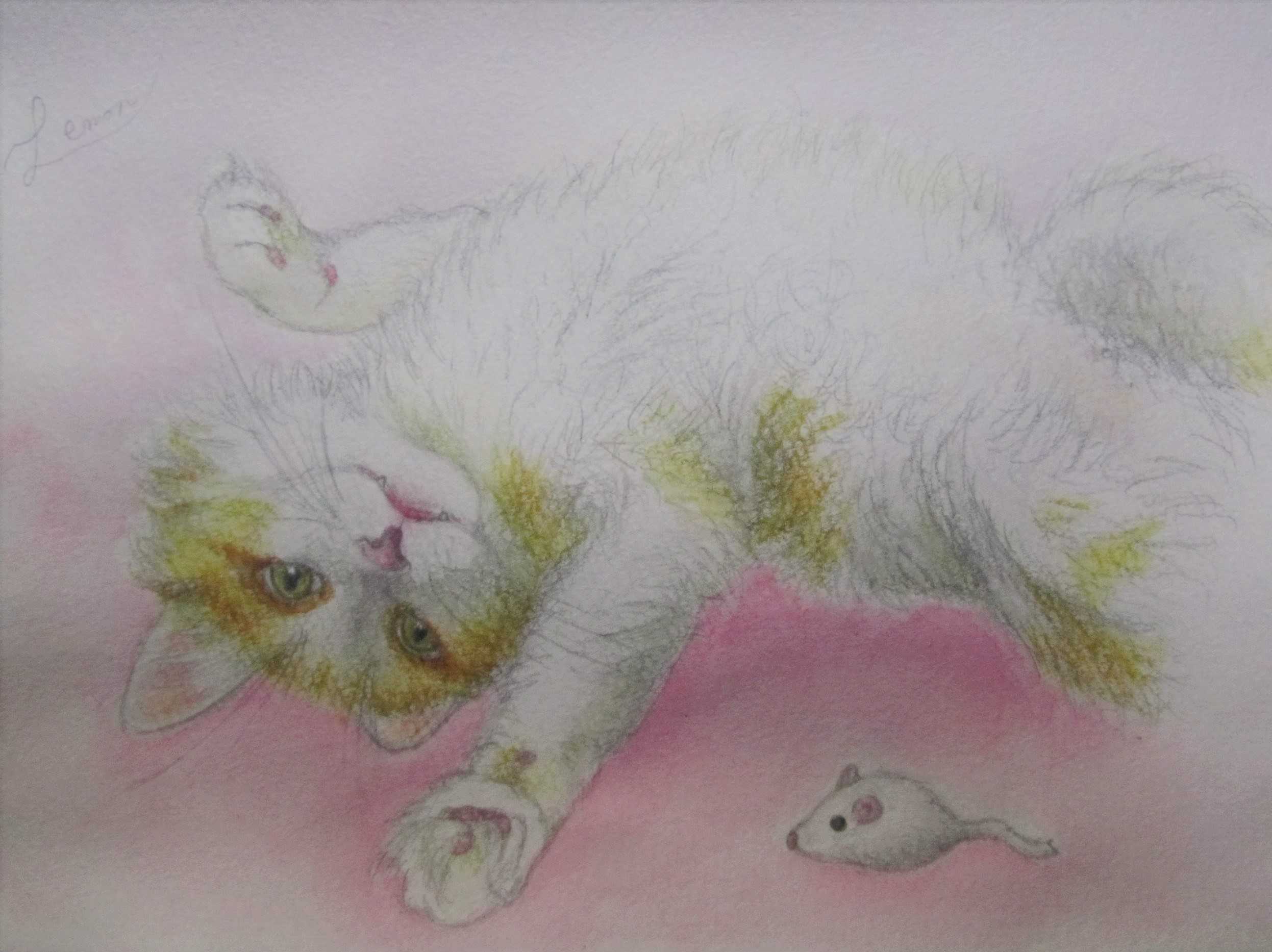 こんにちは、トムだにゃんお約束のれもん兄さんの似顔絵も描かせて頂いたにゃ改めて、らいむ王子とは全然違うお顔立ち✨目とお鼻の形が特徴的かにゃ~。あと胸元の癖毛が可愛いのでクルクルさせちゃったにゃとても難しかったけど、少しでも雰囲気が似ていたら嬉しいにゃ~♪れもん兄さん、大好きにゃ!!