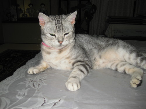 オハヨウございます^^ 今日は、本当に良いお天気ですが、またまた地震があったようで、本当に油断できないです** 被害が、大きくならないといいですね>< ”昨日までは、我が家の長女 くつしたこと・・・くーちゃんの紹介させて頂きました 2010/9 くつしたが、我が家に慣れ親しんだころ・・・・(東京)の子供のアパートでは・・** ”チムチム”登場 親には内緒で><また、猫を飼っていた・・・・・ (困ったものです) この写真は、大きくなってからのものですが、このチムチム君♂ 環境の悪いペットショップにいたらしく、咳、下痢がひどく、病院に連れて 行った所、心臓にも欠陥があると言われました>< でも、息子の懸命なお世話の甲斐あって 今では、もう元気になりました あんまり腹が立ったので、ペットショップに文句言ったら 代わりの猫 と交換してくださいとのこと 愛着もわいているし、品物を変えるように、交換できるわけありません!! 結局、今後一切の面倒は自分で引き受けるとの条件で、お金は、全額 返して頂きました この世に生を受けても、人間の都合で”命を絶たれる><”動物がいることは、 辛いです かといって、多くの動物を飼う事も出来ないのが、現状なので、避妊、去勢 手術をして、責任を持って最後までお世話していきたいと思います (続く)