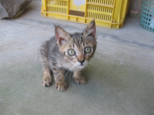 我が家の二男坊 ♂ごまくん 友達からお預かりした3匹の中で、一番 元気の良い、ゴマ君を我が家に迎えました ”くつした”のそばにどんどん近づいて…積極的な男の子です 獣医さんに聞いたところ、猫も、異性同士の方が、うまくいくことが多いと 教えてくれました 残された♀は、母猫と一緒に友達の家で飼うようになりもう一匹の♂も、 引き受けてくれる人が見つかり、一安心です ごまくん 皆と離れ離れになってしまいましたが、(><) 心配しないで、いいよ~ (続く)