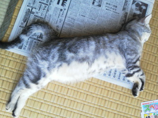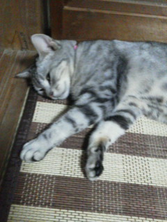 今日は、休日出勤と思いきや・・・・思ったほど、忙しくないので、お休みになりました 我が家は、どんなに暑くても、自然の風 もしくは、扇風機しか使いません>< と言うか、エアコンがありません まわりは、田んぼや、畑だし、結構風が、入ってくるんですよ~ でも、さすがにこの暑さと湿度には、悩まされます 3匹のニャンコも、玄関の靴箱の上!お座敷のテーブルの下!二階の机の上! どこか、涼しい所はないかと、一番いい場所で、寝ております・・・・・