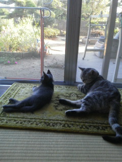 早いもので、暦の上では、今日から・・・秋になるんですね まだまだ、昼間は暑くて大変ですが>< 夜になると、あちこちから、虫達の鳴き声が聞こえてきますよ~ 涼やかな鳴き声を聞いてるだけでも、落ち着いた気持ちになれます 我が家のクーとゴマは、外が涼しいので、最近は、家の外で、くつろいでいる事が多くなりました 一番ちびすけの・・虎鉄クンだけが、一人取り残されて、寂しそうです でも、まだまだ君は、夜遊びするのは、早いよ~