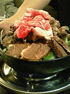 元旦、ディズニーを抜けて浅草寺に行ってみた。さすが元旦!!すっごーーーーい人で牛歩の状態@@@で、結局お参りはあきらめて(何しにいったのか??)お昼を食べることに・・・浅草ってすき焼きが有名なの?すき焼きのお店がいっぱい!どこも行列!!で、たまたま入ったお鍋のお店。牛筋とホホニクのお鍋を頼んだ。味付けはすき焼き風の甘辛!おいしかった~♪野菜とかお豆腐とかを追加していっぱい食べました(@^^)/~~~これに生ビール&まっこりがぴったりあうのよね~元旦からいい気分!!