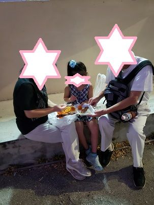 駐車場近くの石段に座ってディナーTime♪