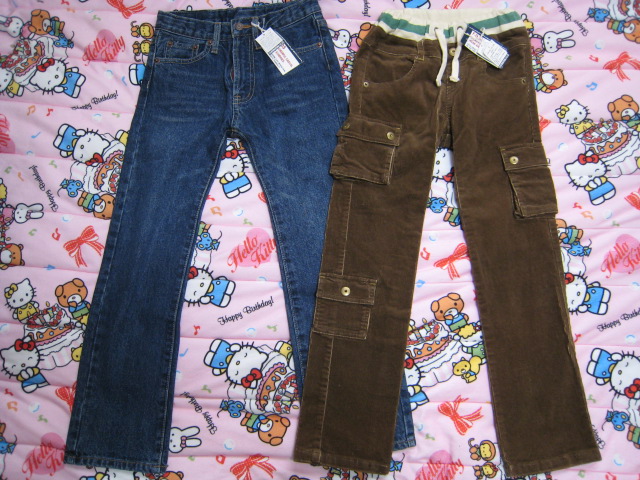 先日バースディとアウトレットショップでトム用のパンツを2枚ゲットしました!デニムのパンツはアウトレット品で、ポケットの縫い目によーくよーく見ないとわからないぐらいのほつれがあり、2900円→490円ブルーのパンツは、バースデイの夏物処分で300円でしたトムは幼稚園ですぐにパンツに穴をあけて帰ってきます・・・4月に入園して、すでに4枚穴があいてしまいましたみなさんは通園にどんなお洋服を着せていらしゃいますか??うちの園は一応指定のトレーニングシャツとズボンがありますが、行事の時以外は自由なので汚れても破れてもいいように、リサイクルショップで買ったものや、サイズアウトしそうなものをガンガン着せています何かおすすめがあったらぜひ教えてください