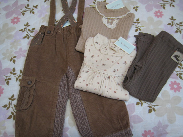 こちら、ビケット100センチアウターなしの4点でした。サスペンダー付きパンツ以外は使えそうです続きまして・・・こちら、ユッピー100センチです。個人的にははずれかな・・・サスペンダー付パンツ・ピンクのもこもこアウター・スパッツ付きパンツは欲しい方がいらっしゃいましたら交換お願いしたいと思いますただ・・・ブログ初心者なもので交換のやりかたなど1から教えてくださる方お願いします