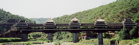 いつも文字ばかりの日記になっているので、たまには画像も使ってみましょう。題名にある「屋根付き橋」というのは、雨風から橋を守るために、屋根がかかった形の橋のことです。クリント・イーストウッドとメリル・ストリープの共演で話題になった、「マディソン郡の橋」に出てくるのが、このタイプの橋としては有名だと思います。この映画に出て来た屋根付き橋は、何か橋の上を板で囲っただけのような、四角い形のものだったと思います(実はこの作品未見でして、写真でしか見た事無いのです)が、中国には、こういうのがあります。立派な瓦屋根が付いて、ちょっと見ではお寺か楼閣にも見えますが、れっきとした橋で、中国では「風雨橋」と呼ばれています。この橋があるのは広西チワン族自治区の三江(サンジャン)というところです。「広西チワン族自治区」という地名は、日本人はあまり聞き覚えがないかも知れませんが、ベトナムと国境を接している部分にあり、あの有名な観光地「桂林」は、この自治区内にあります。桂林で有名な「川下り」を行う場合、船に乗って桂林の南側にある陽朔方面に下って行く事になりますが、三江は桂林の北側方面にあります。この写真の橋は、実際には三江の街から少し離れた(はっきり覚えてないのですが、10kmくらいだったかな?)程陽というところにあり、文化財指定を受けています。この周辺には「トン族」という少数民族が住んでいるのですが、彼らは建築技術に非常に秀でており、こういった風雨橋や楼閣があり、緑濃い山の中に建つそれらの建築物は、我々旅行者の目を楽しませてくれます。先にも述べた通り、この「程陽風雨橋」は文化財指定を受けているだけあって、トン族の風雨橋の中でも最大規模で、管理も行き届いています。フォ・ジェンチィ監督の「山の郵便配達」という湖南省を舞台にした映画があるのですが、その中で主人公親子が郵便を届けて行く村として、トン族の村が出て来ました。そこで、祭りのシーンがあり、ちらっと風雨橋が映るのですが、私が見た限り、この「程陽風雨橋」だったと思います。物語の舞台は湖南省ですが、そういう場面で有名な建物などを使うという手は、何も中国に限ったことではなく、よく使われる手ですし。さて、この橋に絡んでは、もう一つ思い出があります。この橋までは、三江の街から普通にバスで行ったのですが、有名な観光地だから頻繁にバスの便があるだろうと思って、事前に詳しく調べもせずに行ったところ、夕方の4時くらいにさて帰ろうとバス停に行ったら、地元の人に「最終バスは行っちゃったよ」と言われてしまいました。他所から旅行で来た中国人たちも途方に暮れていたようですが、私も1人で行っていたので、どうしたもんかと考え込んでいました。一応、橋の横には宿もあるのですが、その日の宿は既に街に確保していたし、予定では翌朝早く立つつもりだったので、出来れば何とか街に帰りたかったのです。そうこうしているところに、やはり橋を見に来たスウェーデンだったかどこだったか、とにかく北欧の方から来た留学生がバス停にやって来ました。彼と少し話して、2人で歩いて街に向かう事にしました。山道でしたが、街までは大体下り坂で、距離的にも2、3時間で着けるだろうし、男2人で一緒に歩けば、そう危険もないだろうという事になったのでした。まだ明るいし、気候もちょうど良くて、ちょっとハイキング気分で歩いていると、のこのこ歩いている外国人(特に白人である彼)が珍しいのか、結構農作業とかしている人達が声をかけて来ます。その人達に、ちょっと聞きかじったトン語で挨拶したりしながら、ほんの10分かそこら歩いたところで、後方から何やらエンジン音が。。。振り返るとトラックが2台、私達の方に走って来ています。と、スウェーデン人の彼がいきなり「ヘーイ」とか言いながら両手を振って、道の真中に立ち塞がりました。トラックの運転手さんも驚いたようで、止まったところへ彼はすばやく近寄り、荷台が空いているのを確認すると「OK?」とか言いながら、荷台に上って行きます。その図々しさ・・・いや、素早さは、横で見ていた私やトラックから降りてきた中国人たちも、ちょっとの間呆気に取られるくらいでした。さすがに危ないと思ったのか、運転手さんが荷台から降りるように言って、結局2台のトラックに1人ずつ乗せて貰えることになりました。私は最初は中国人だと思われていたようで(いつもの事ですが)、「何で外国人と一緒にいるんだ?」というような事を聞かれたりしましたが、私が日本人だというと、それ以上何も説明しなくても、何となく納得していたようです。別に日本人だからどうこうということもありませんでした。というか、この時に限らず、少数民族地域では、私が日本人だからといって特別どうこうということは、少なくとも私はありませんでした。結局2、3時間かかるのを覚悟で歩き始めたのに、