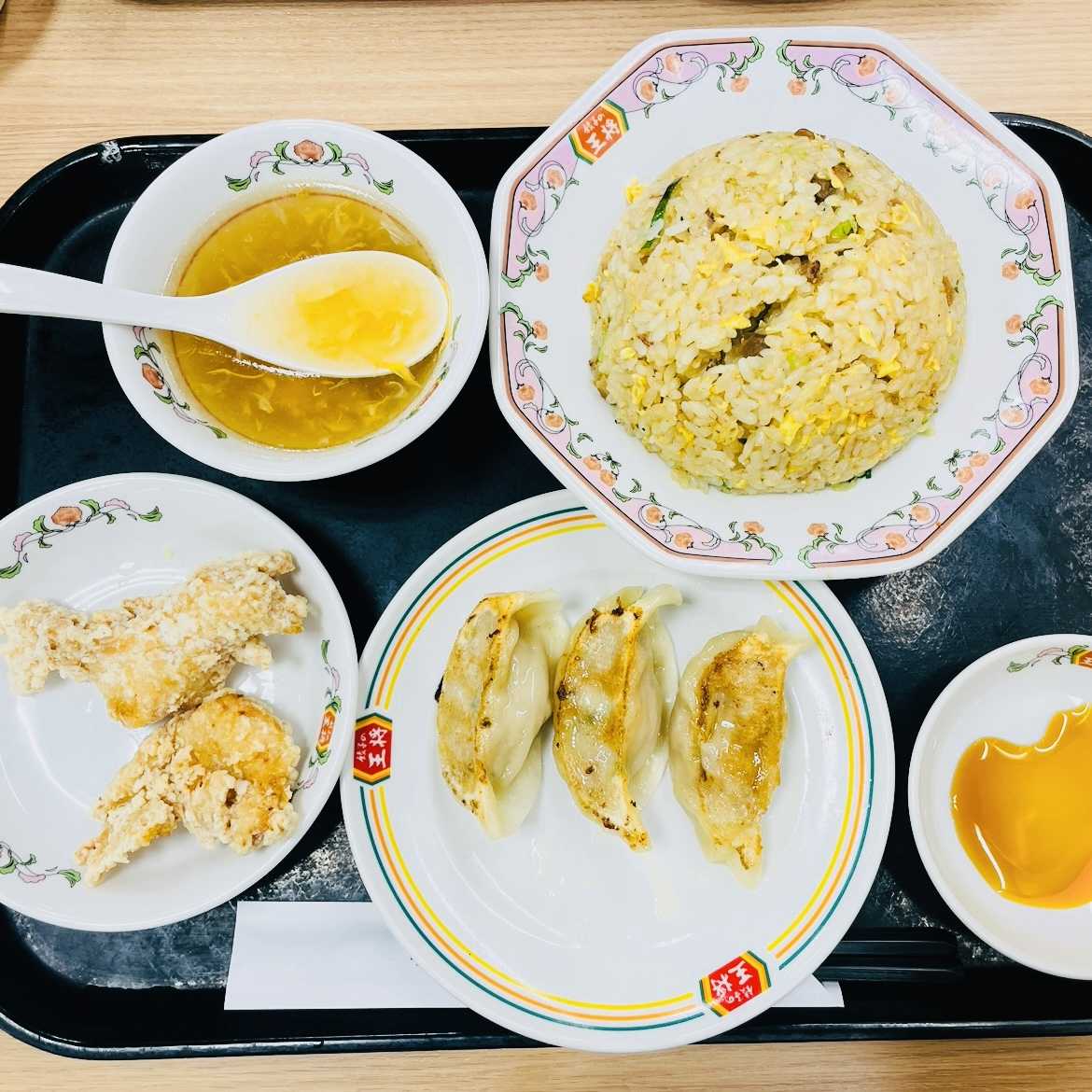 昼:王将(チャーハン、餃子、鶏の唐揚げ)、ビール、紹興酒
