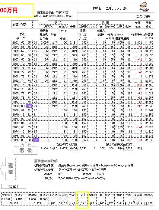 ※同じく キャッシュフロー表。左が現役、右が老後。