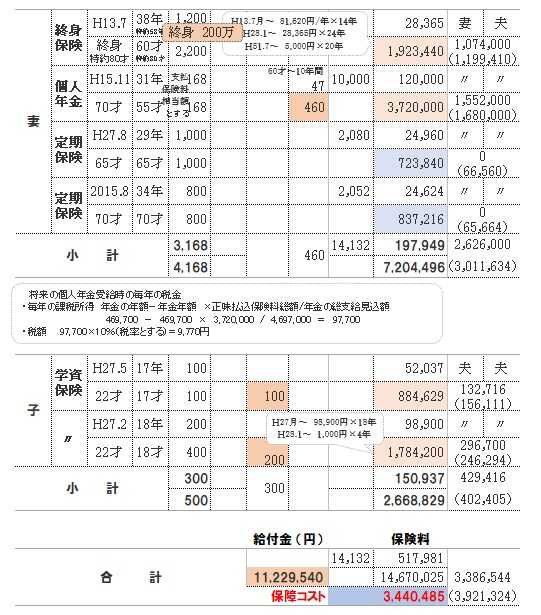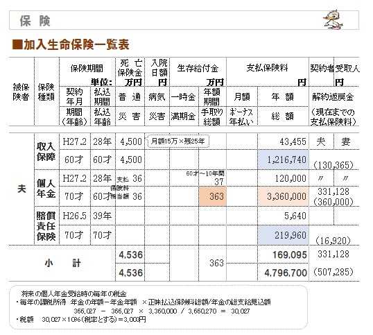 《 加入生命保険一覧表 》