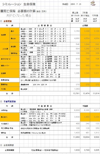 死亡保障必要額 検証結果 :![]()