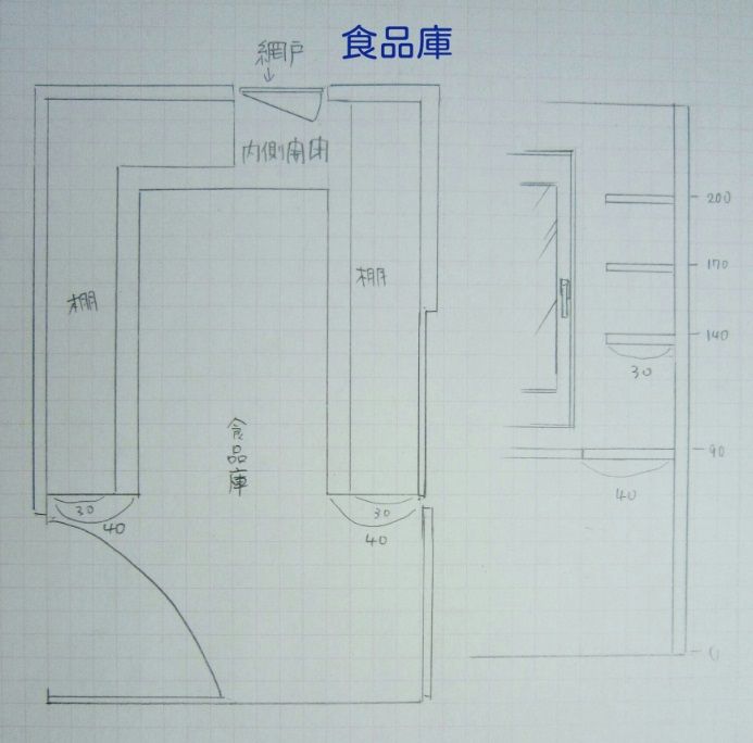 (5)食品庫の棚は高さ90cmに幅40cm、