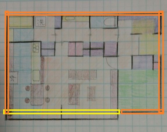 オレンジや黄色が2階の外壁ラインです。