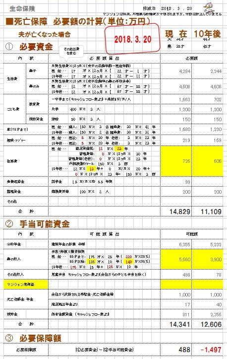 その結果、だいぶ必要保障額が減額しました。