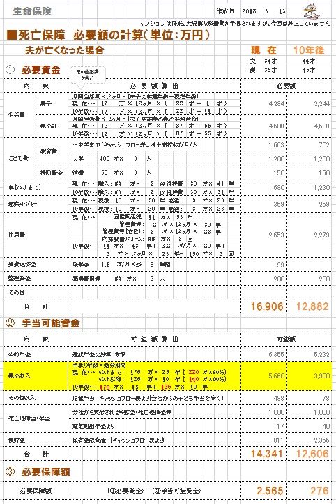 死亡保障のところを更に考えました。