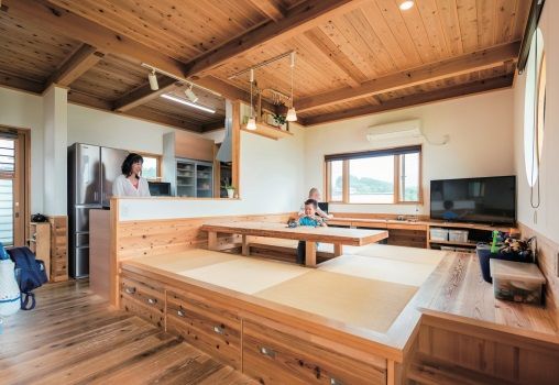 白い壁・白い木を使った造作・畳は緑ではなく黒系)