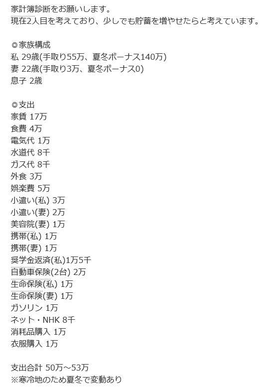 奥様にかかる費用は少なくとも手取り3万円以内に。