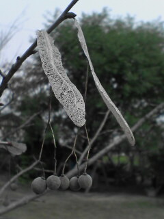 お昼休み、ちょっと用があって、ある方の家に・・・・・そしたら庭の冬支度をしてた。。。で・・・ふと見ると、横に菩提樹(名前わからなかったので、聞きました)うっすらと枯れた葉っぱがぶら下がってるんだけど、その葉っぱから白い実が出てて、とても、ひっそりと、シンプルでかわらいしかった。いいな~この感じ好きです。