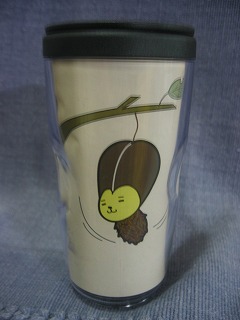今日母が、アロバーでウォールマグを買ってきてくれた。保温保冷効果のあるドリンクタンブラーだそうだ。ウフッ!!家で淹れたおいしいコーヒーを入れて、持っていけるぞ~~!!て。で・・・・それにはミノムシになった豆蔵がぶら下がっていた。うぉぉぉ~~!!かわいいではないか~~!!と思ったが、ん??ミノムシ??ん?ということは、おみずさん??いやいやおみずさんではかわいくない!!とすぐに打ち消し・・・・・ 気持ち新たに、そのミノムシ豆蔵の反対側には、ちゃ~んと・・・・魔女となきちのシールを貼りましたア~。 豆蔵&魔女なら・・・・かわいさ倍増でしょう。さあ、明日からおいしいコーヒー飲みながらお仕事いきま~す。