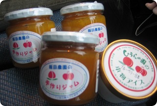 今日は雨が降ってるし・・・・寒かったあ~。が・・・・そんな中前山ダム前の道の駅まで行って来ました。なぜって・・・あららさんが作ったジャムを買うためと、野性のブルーベリーシャーベットを食べてみたかったので・・かなり山の上まで上がっていくのね~~と思いながら、車から降りると、さぶっ!!で・・・・・・お店の中に入って探したら、あったあった!!ジャム。どれにしようて見てたら、別のおばちゃんも興味をもったらしく、一緒になって買ってたあ。そして、野性のブルーベリーシャーベットは、ほんまに野性の味やったあ~。すっきり甘酸っぱい感じ。皮までたくさん入ってた~~!!桃のシャーベットがおいしそうだった。。。。