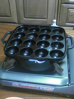 準備開始!!そして、鉄板を熱します。 材料たこ・キャベツ・天かす・かまぼこ・もち・チーズ・紅しょうが・ねぎそして、これを焼くのは絶対!!わ・た・し。誰にも焼かせません!!このときだけは大阪のおばちゃんになります。あのくるくる回すの大好き~ 火の強さが~~ 何個食べたやろ~~。そして、丸いおにぎりを作って、この中で一口焼きおにぎりも・・・・・おいしかった!!